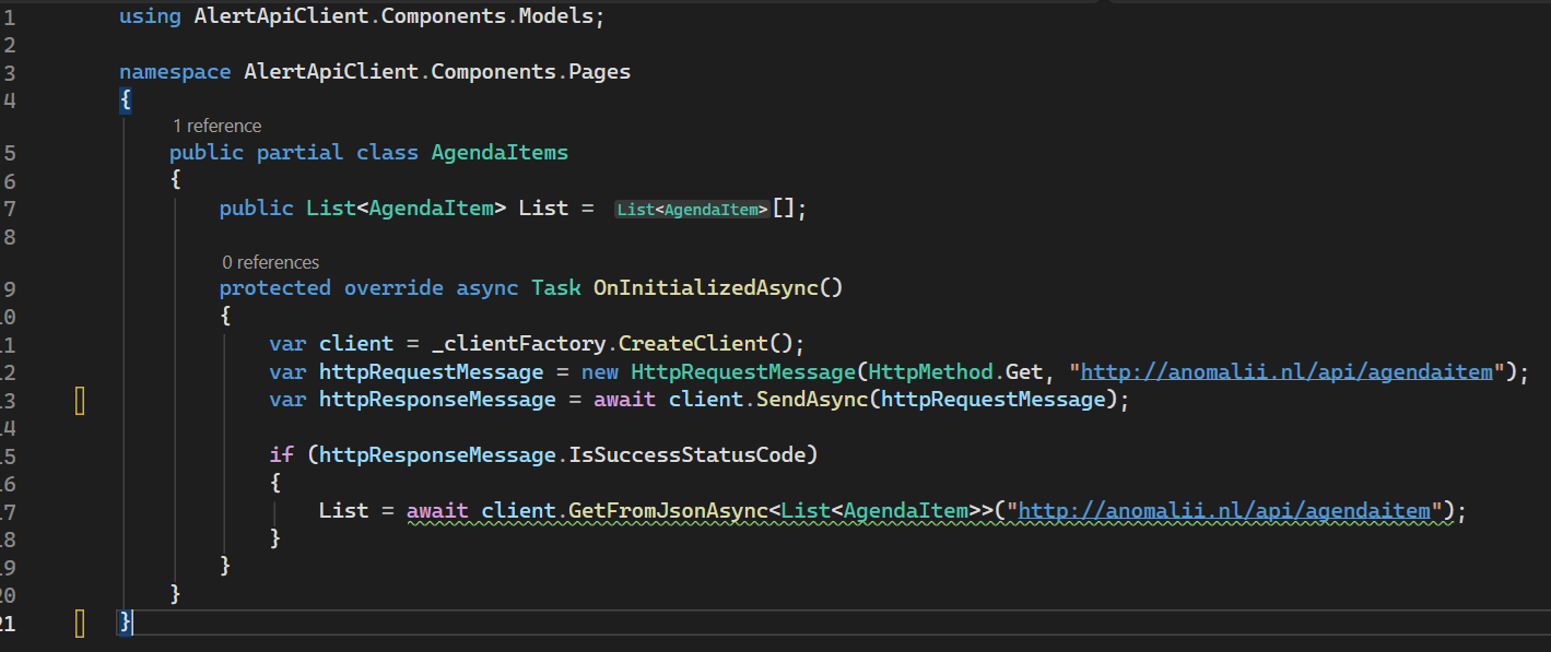 Het voorbeeld betreft die voor het ophalen van agendaitems.